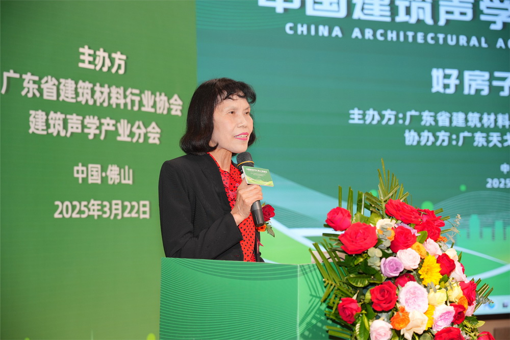 廣東建筑聲學產業協會會長、廣州大學聲光所所長彭妙顏從行業發展的宏觀角度,分析建筑聲學產業面臨的機遇與挑戰。她指出,隨著“十四五”規劃明確要求“建設宜居、綠色、健康的高品質住宅”,消費者對“聲環境健康”的關注度不斷提升,建筑聲學正迎來歷史性發展機遇。同時,新材料、智能化解決方案等技術的不斷突破,也為產業發展注入新動力,呼吁行業內加強合作,共同推動建筑聲學產業進步。